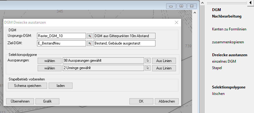 - weitere Nachbearbeitungsfunktionen wie z.B. Bauwerke aus DGM erzeugen einbinden