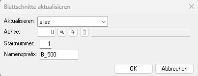 Zunächst muss eine Achse mit Stationsbereich gewählt werden, an der die Blattschnitte positioniert werden.