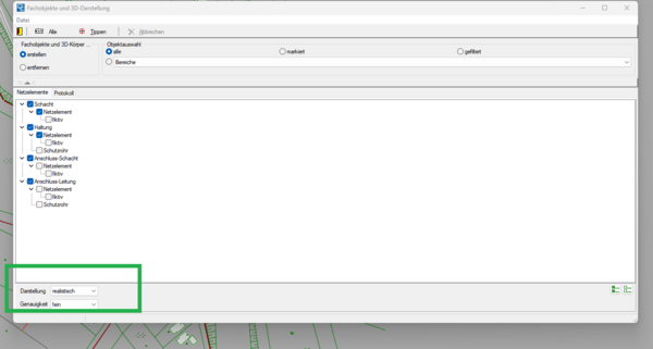 Mit der Version 10.107 wird die Erzeugung der 3D-Fachobjekte weiter verbessert. Die Darstellung wird nun zweigeteilt gesteuert.